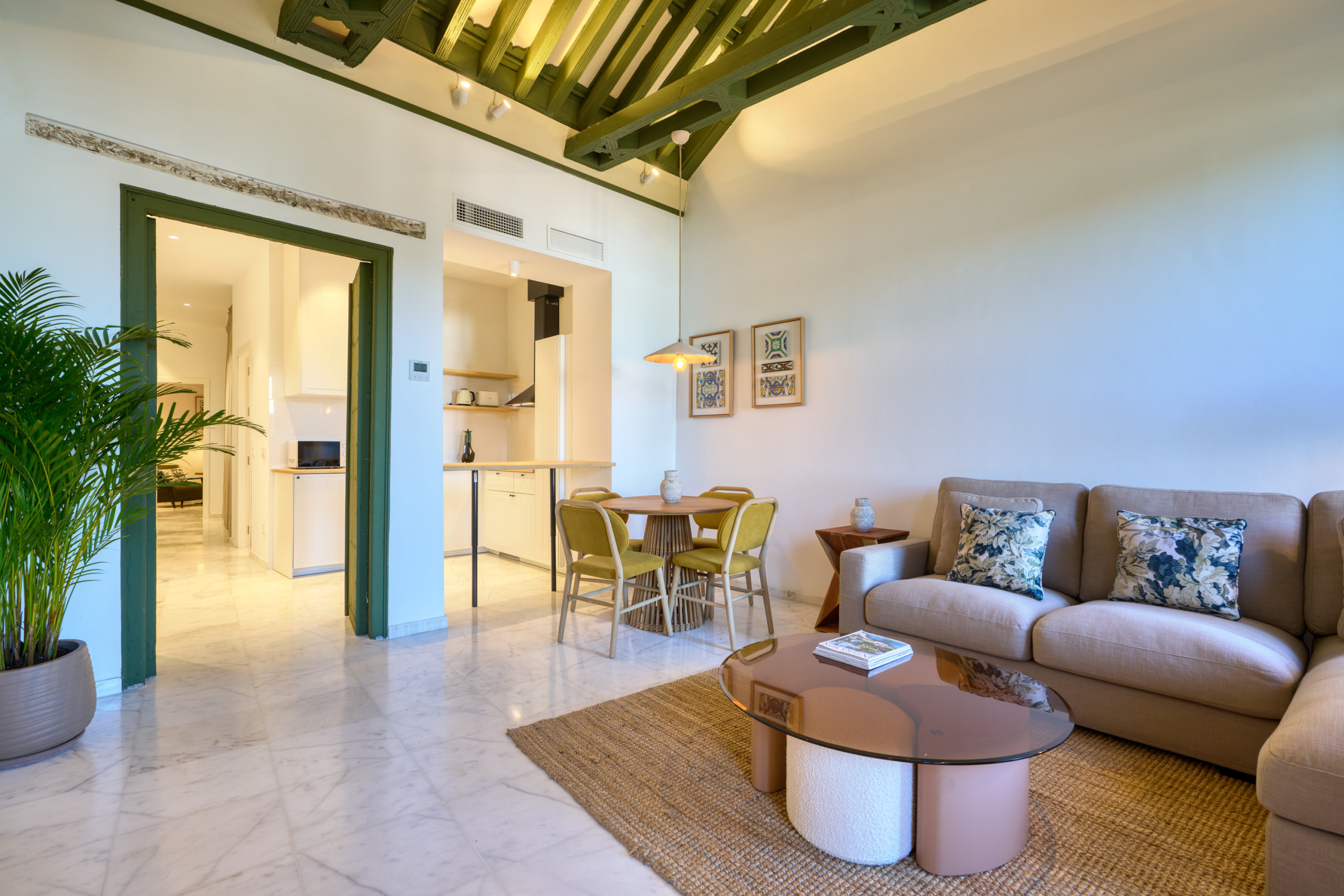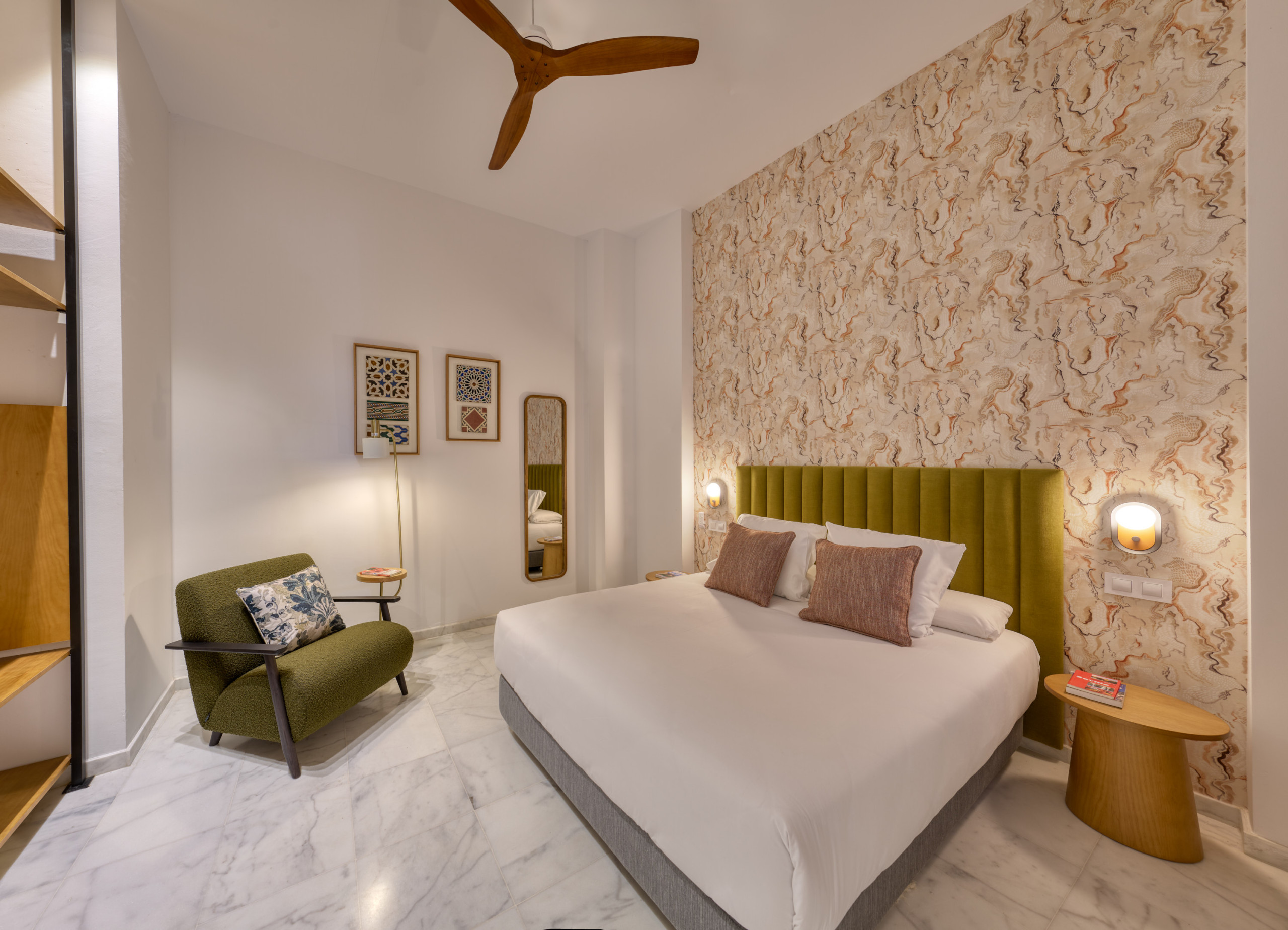 Casa Palacio San José es uno de los mejores ejemplos de la arquitectura palaciega local. Restaurada con un profundo respeto por su distribución original, ha recuperado su grandeza gracias al reconocido arquitecto Rafael Manzano, responsable también de intervenciones en los Reales Alcázares y el Hotel Alfonso XIII. El resultado: un edificio que conserva su alma clásica y ofrece al viajero el confort y la estética del presente.