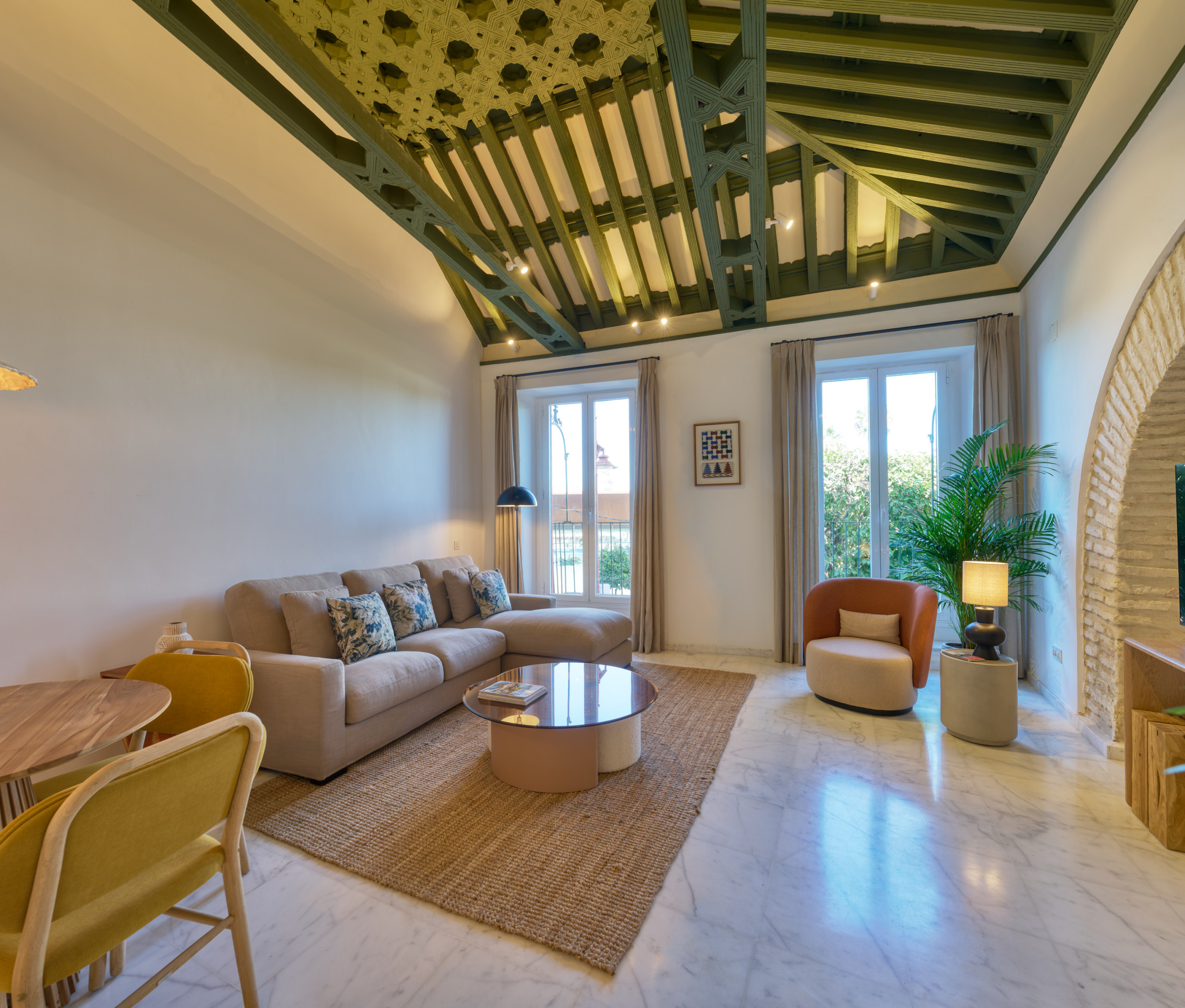 Los amantes del arte, la arquitectura y la historia disfrutarán de cada detalle: suelos de mármol, artesonados, cerámica tradicional y una atmósfera que evoca siglos de vida sevillana.