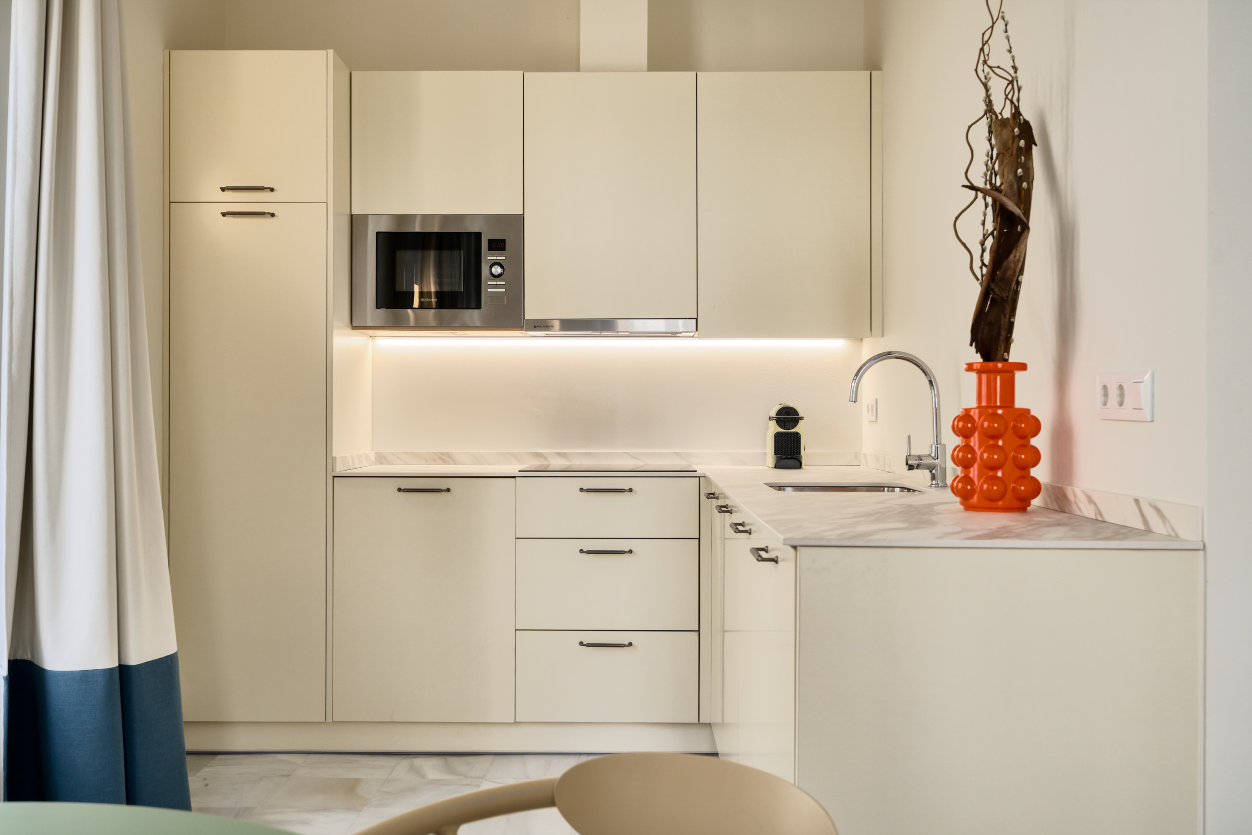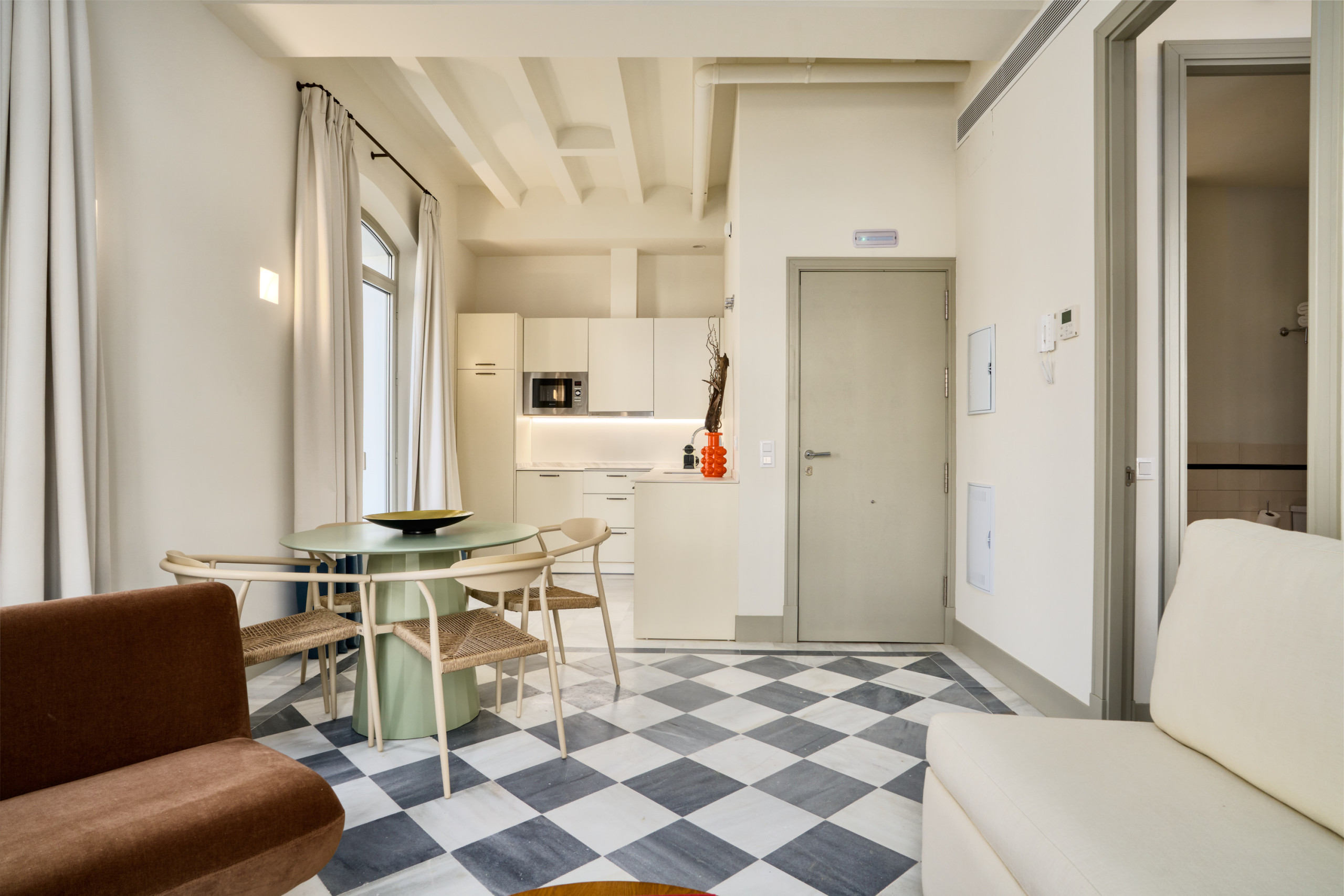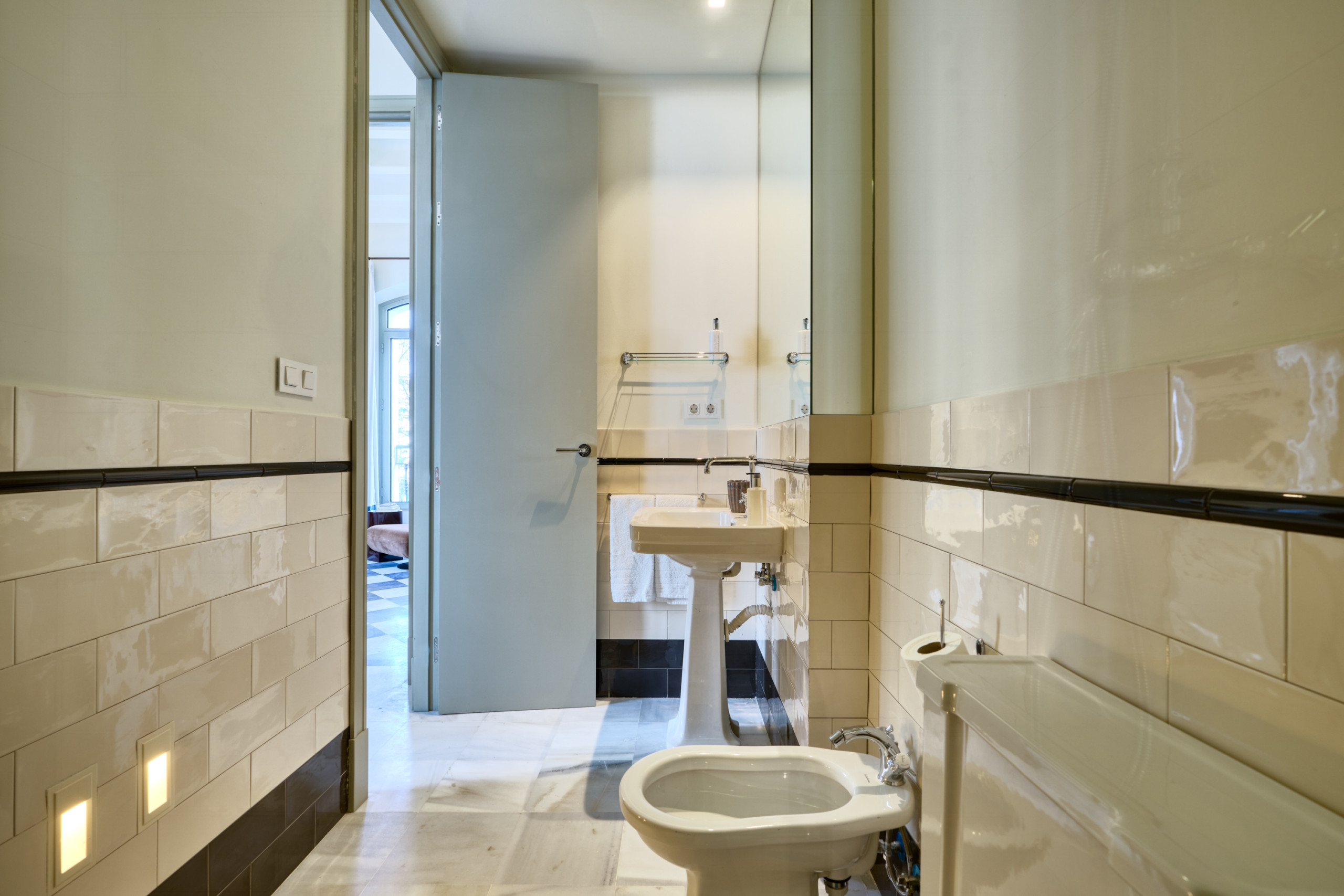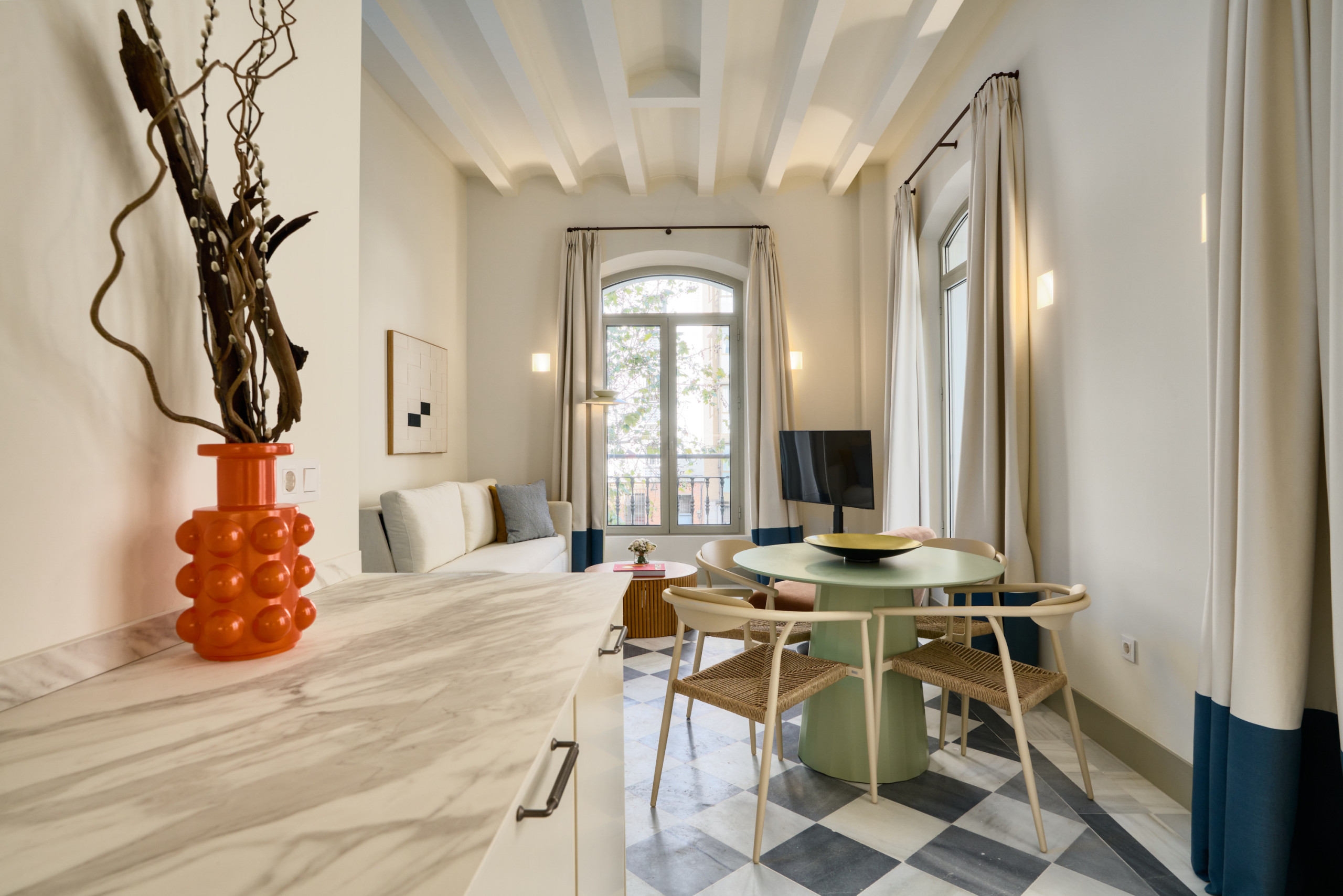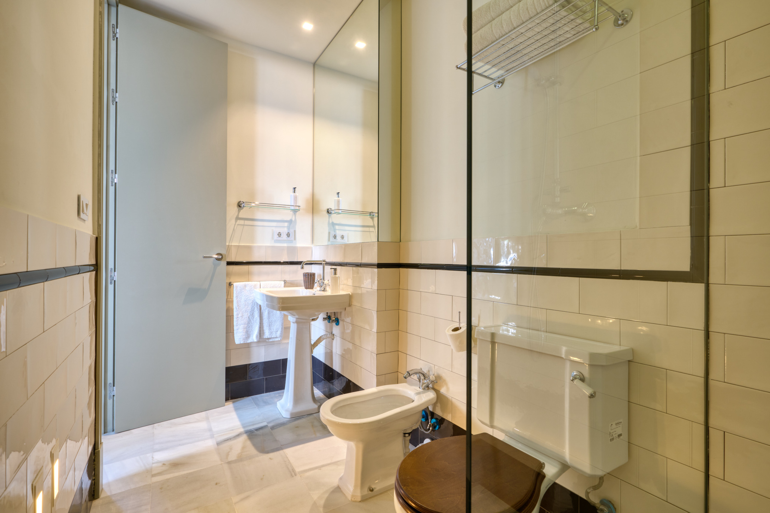 Los techos altos y la cuidada decoración crean una sensación de amplitud y elegancia, combinando diseño y confort. Además, el apartamento está completamente equipado, para que no te falte de nada durante tu estancia.