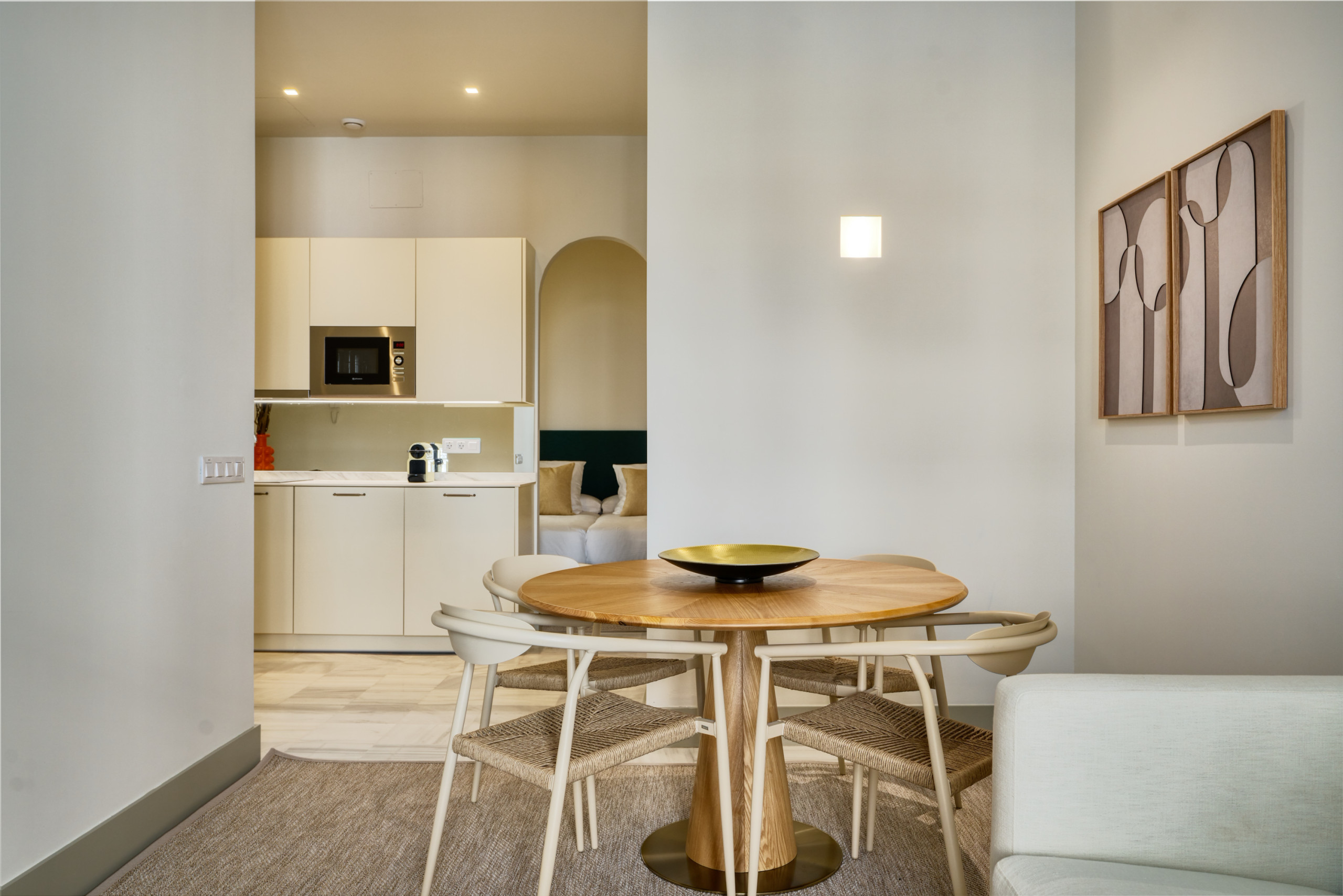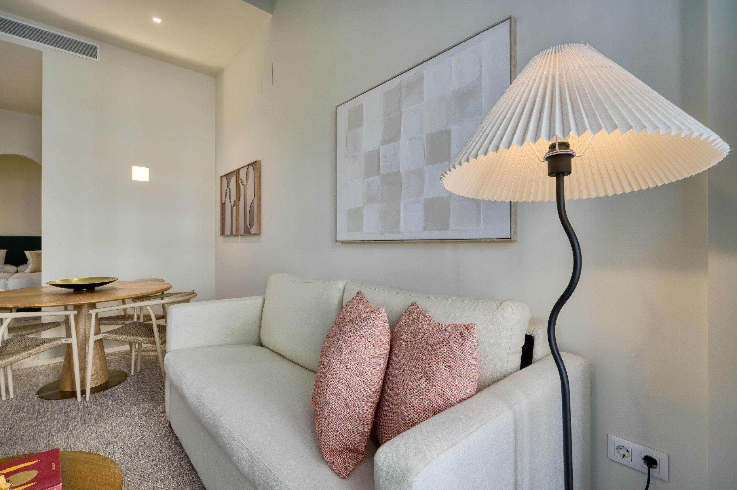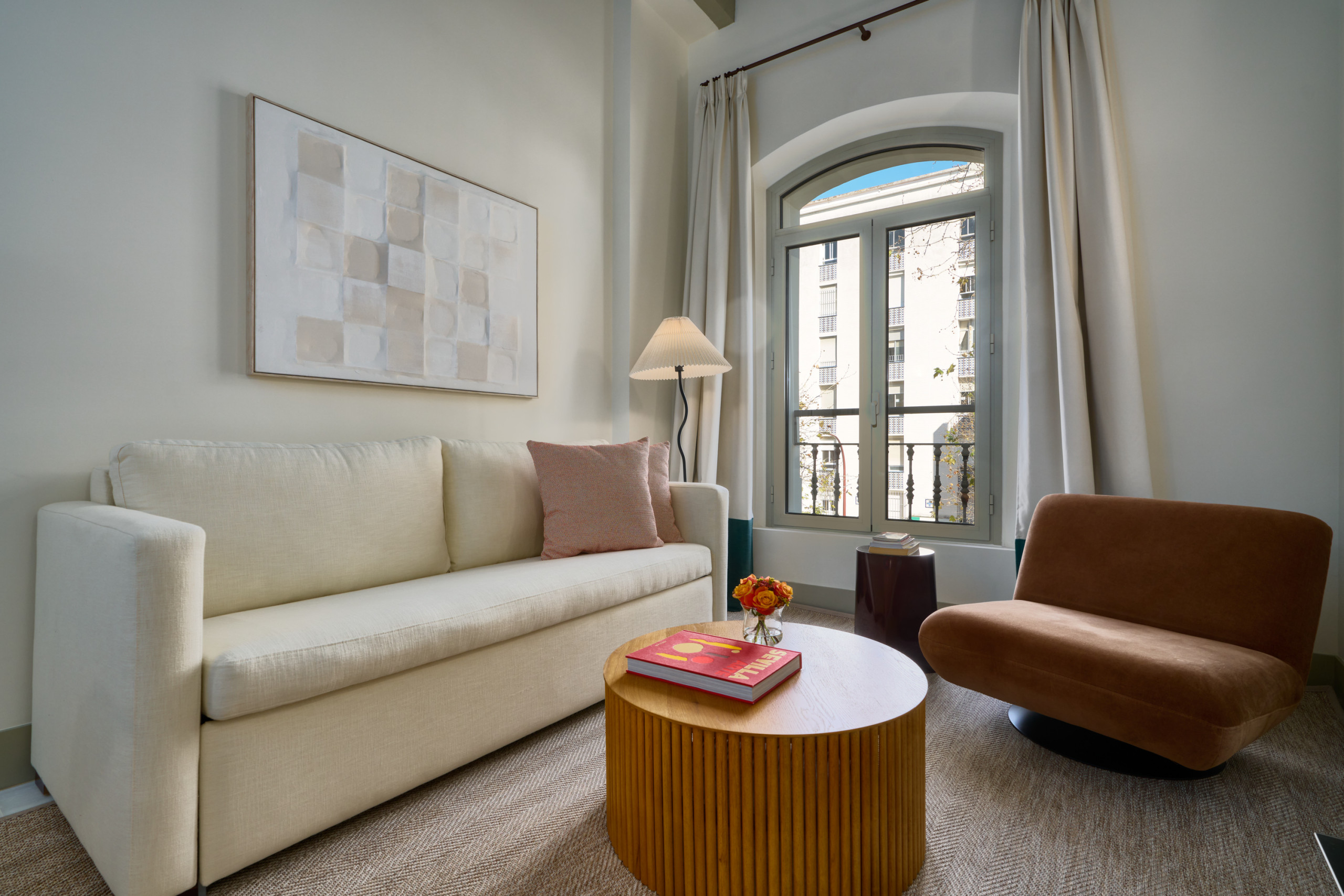 La luz natural entra a través de sus amplios ventanales, creando un espacio perfecto tanto para relajarse después de explorar la ciudad como para disfrutar de una estancia más larga.