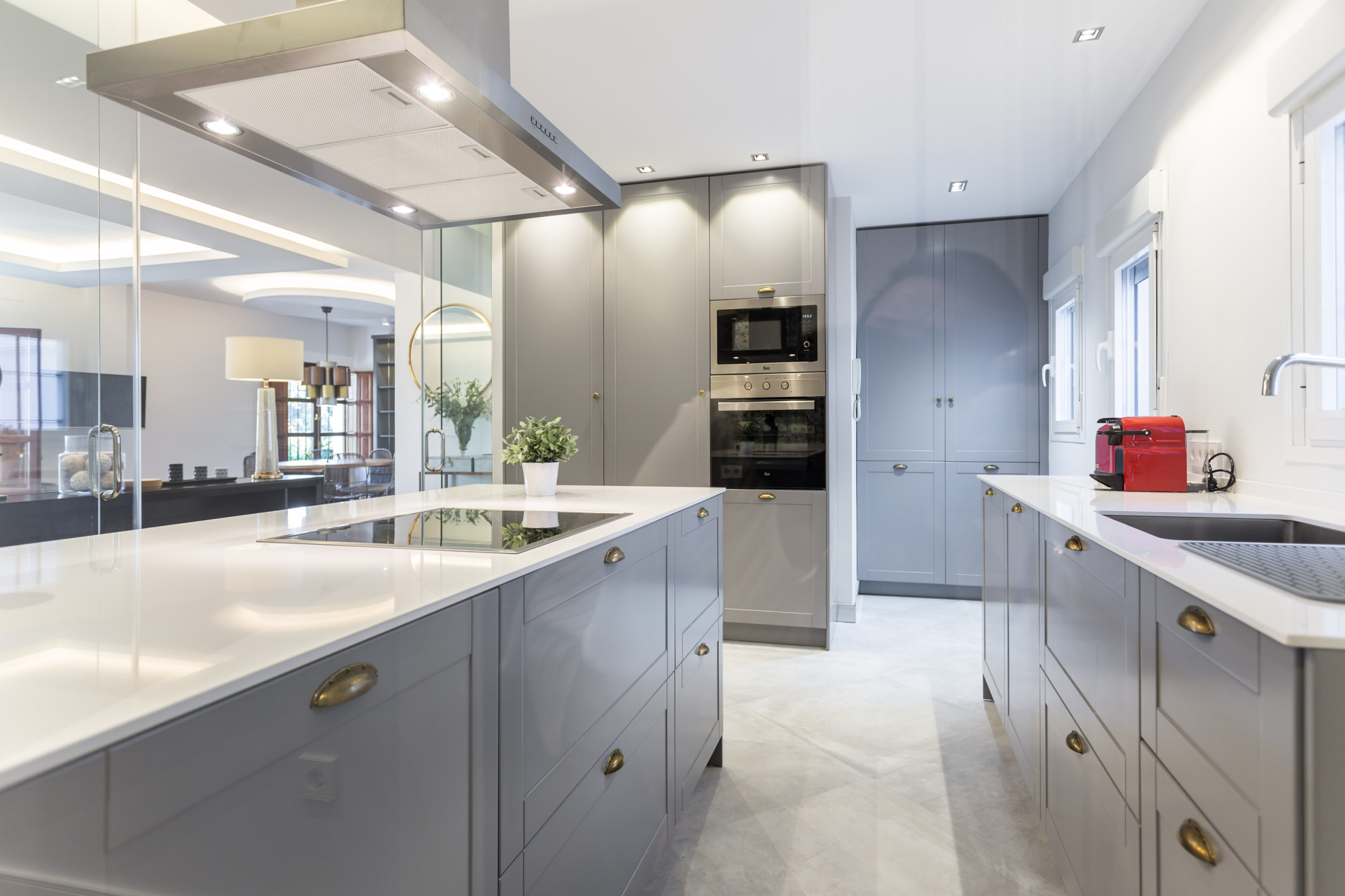 La cocina, integrada y con pared de cristal, está totalmente equipada con electrodomésticos de primeras marcas, menaje completo y una decoración inspirada en la arquitectura sevillana clásica.
