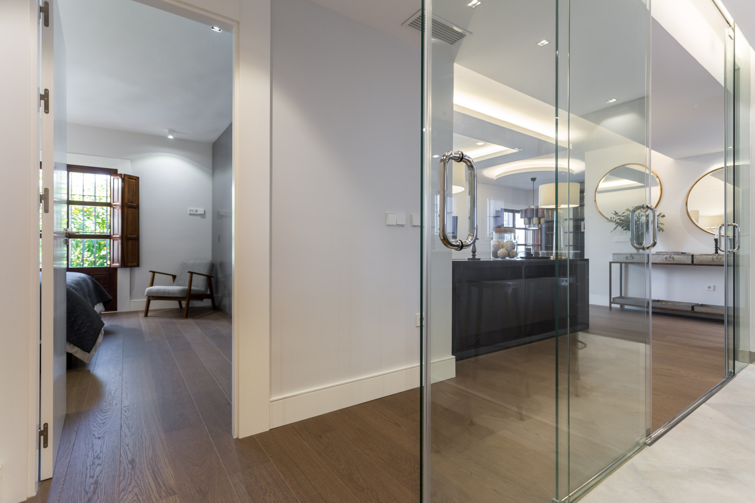 San José V, uno de los cinco apartamentos independientes del palacio, se accede directamente desde el patio central, un espacio soberbio que anticipa el carácter señorial del interior.