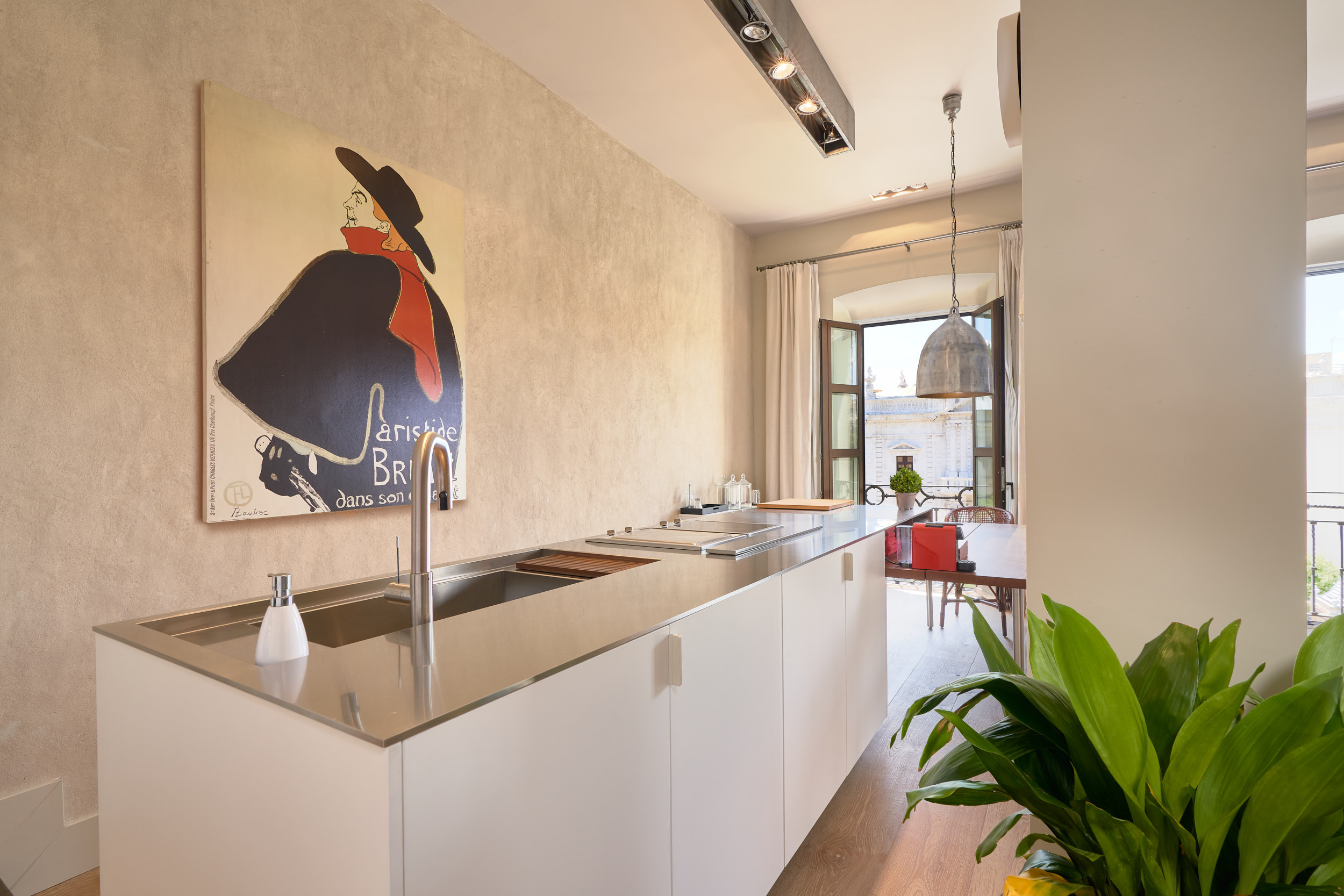 Ubicada en un edificio del siglo XVIII cuidadosamente restaurado, esta amplia vivienda combina luz natural, arquitectura histórica y un interiorismo sereno y refinado.