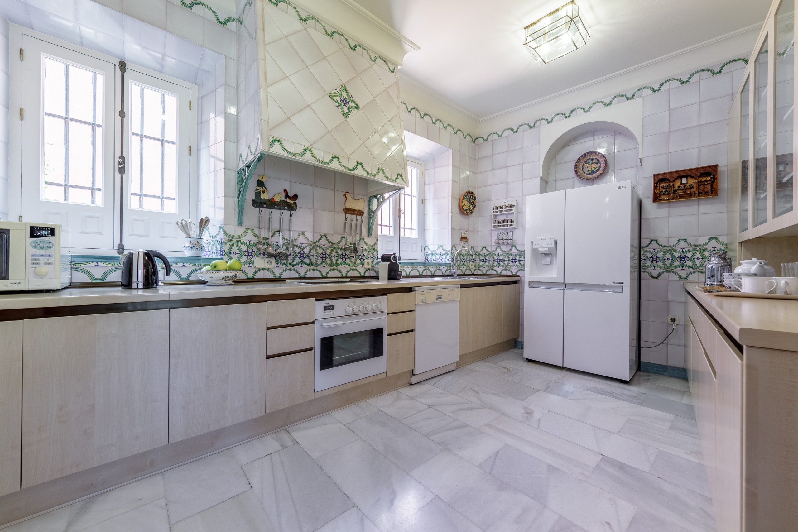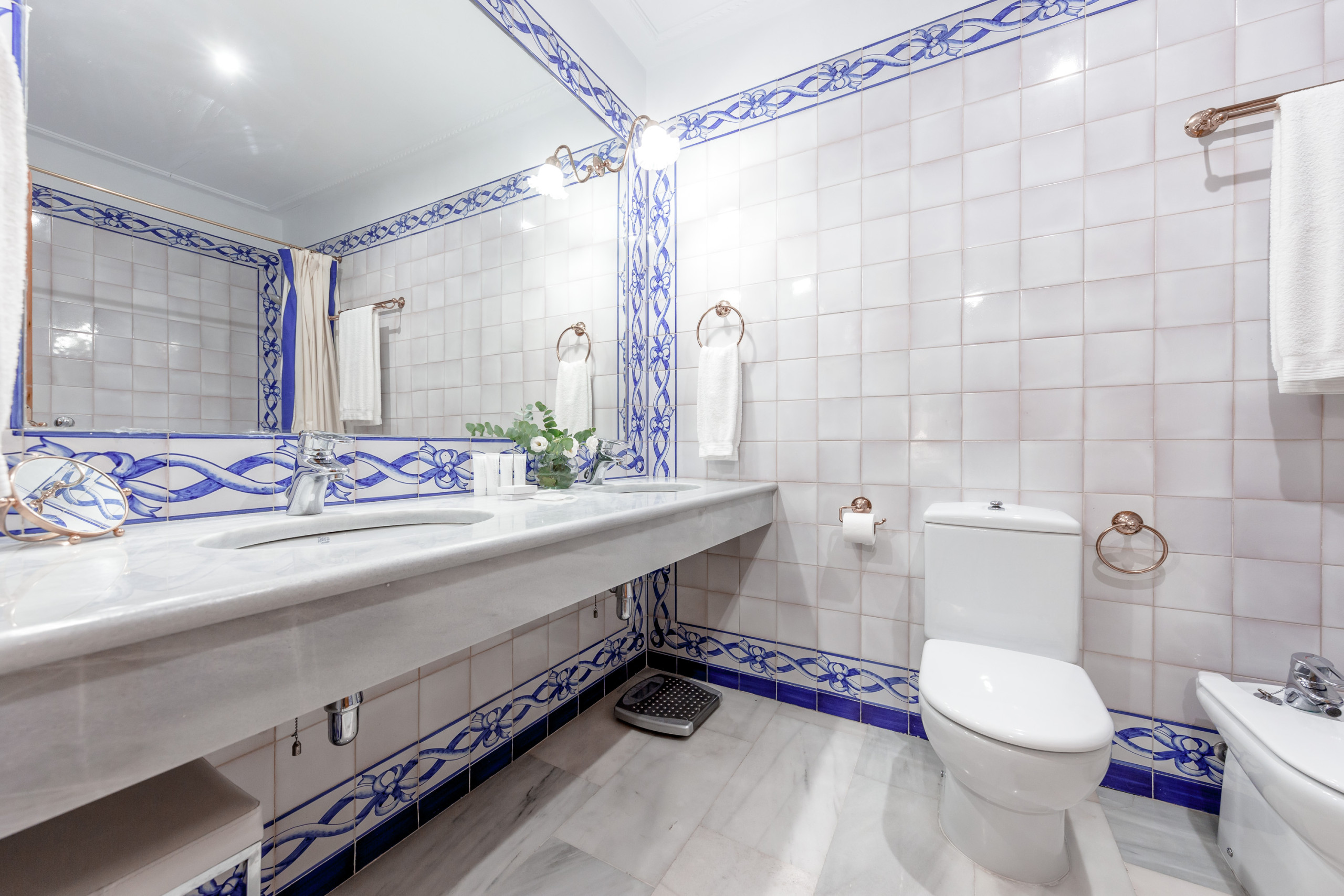 Los baños conservan piezas tradicionales, azulejería clásica y detalles artesanales.