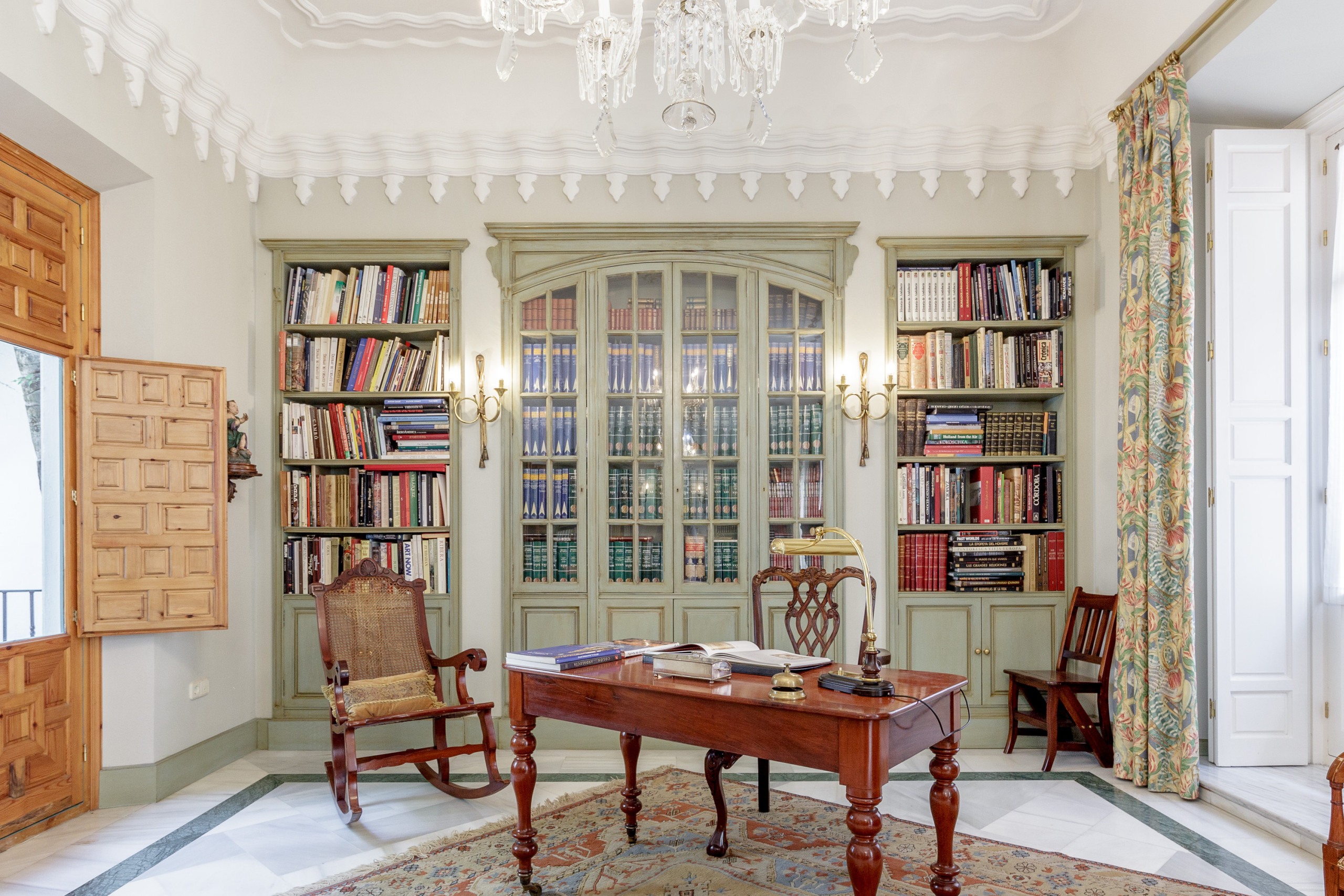 • Gran salón-biblioteca, la joya del apartamento, con tres balcones a la calle y luz natural durante todo el día: el mejor palco imaginable para ver la Semana Santa