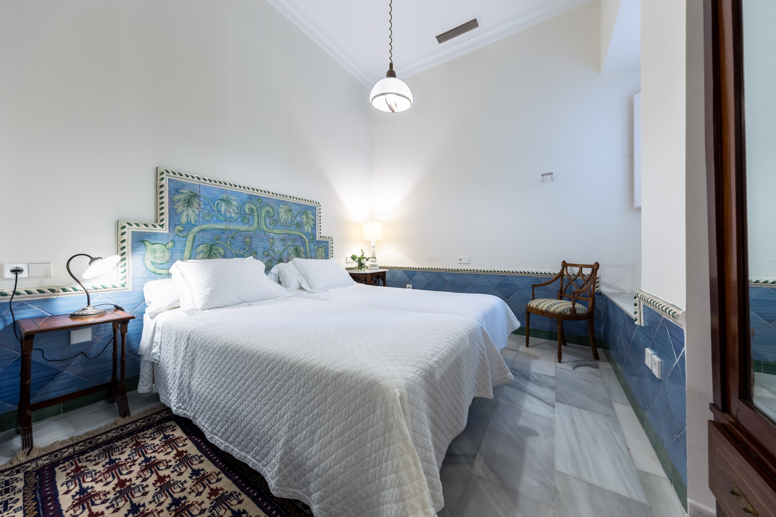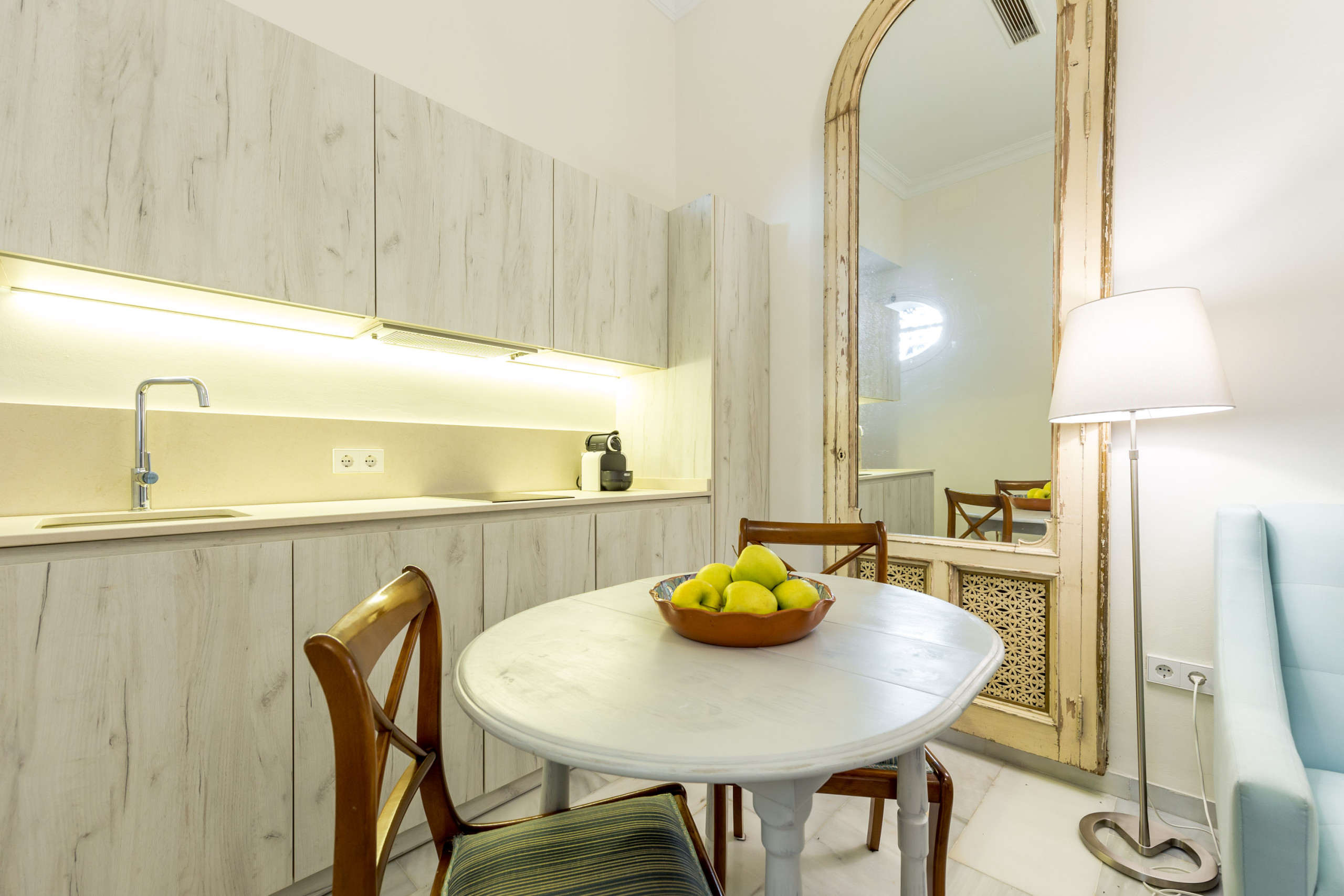 San José V, uno de los cinco apartamentos independientes del palacio, se accede directamente desde el patio central, un espacio soberbio que anticipa el carácter señorial del interior.