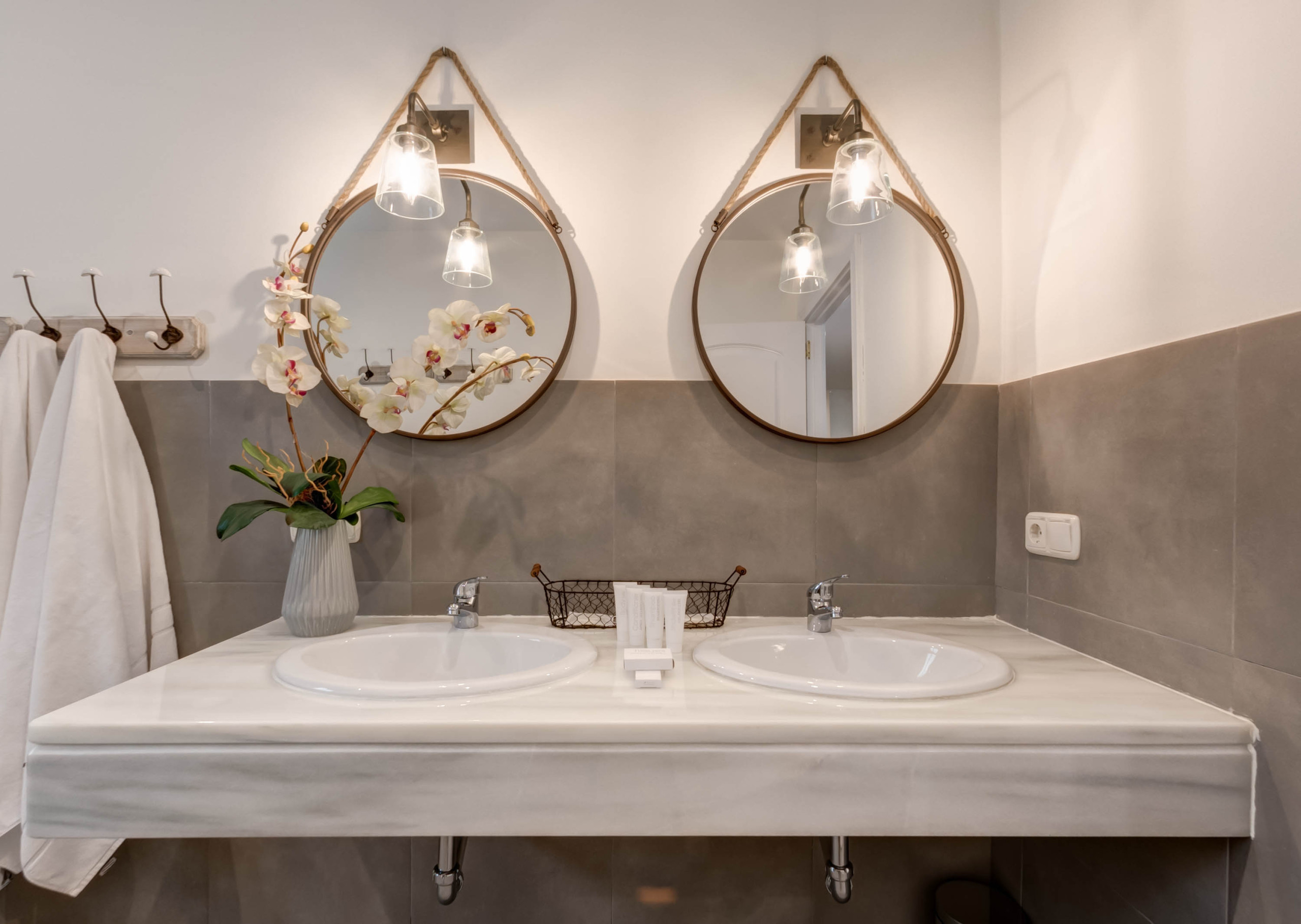 • 2 full bathrooms with double washbasin, rain effect shower and bathtub.