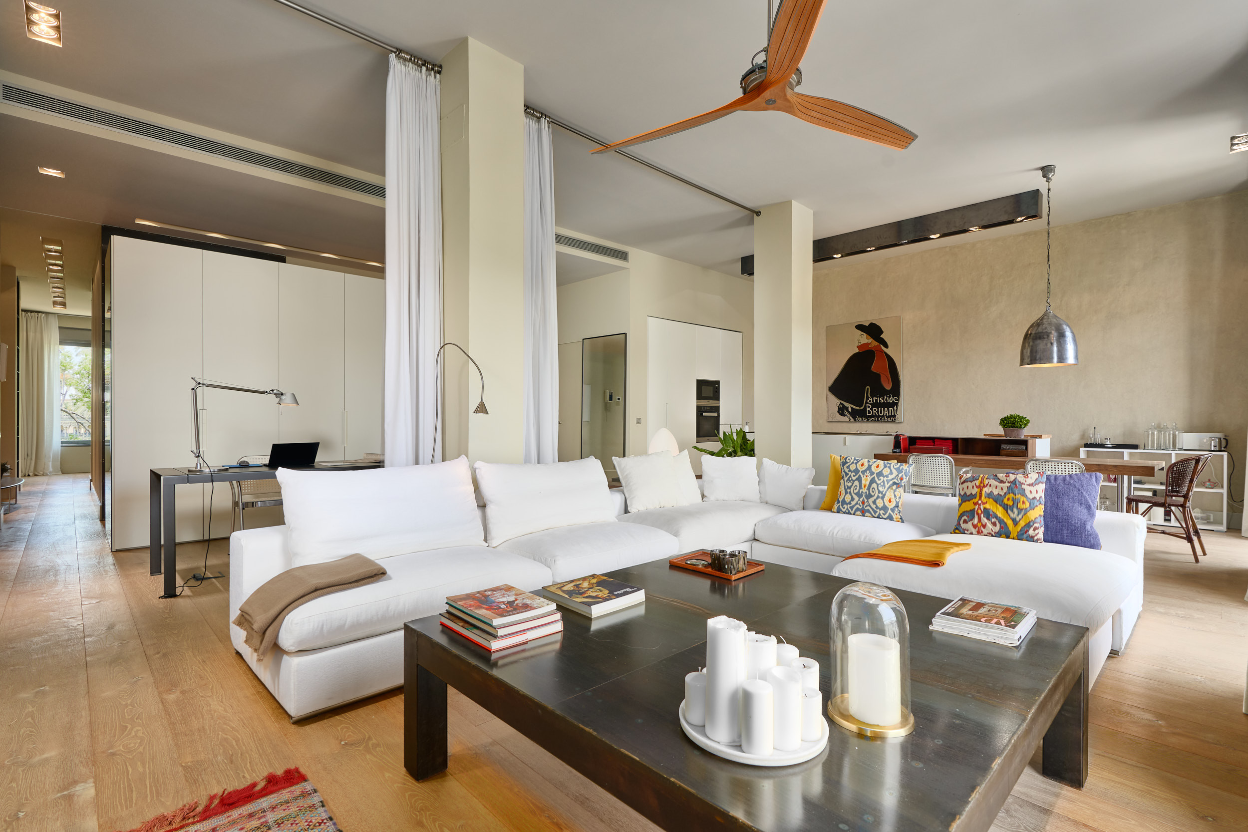 Located in a carefully restored 18th-century building, this spacious dwelling combines natural light, historic architecture, and a serene and refined interior design.