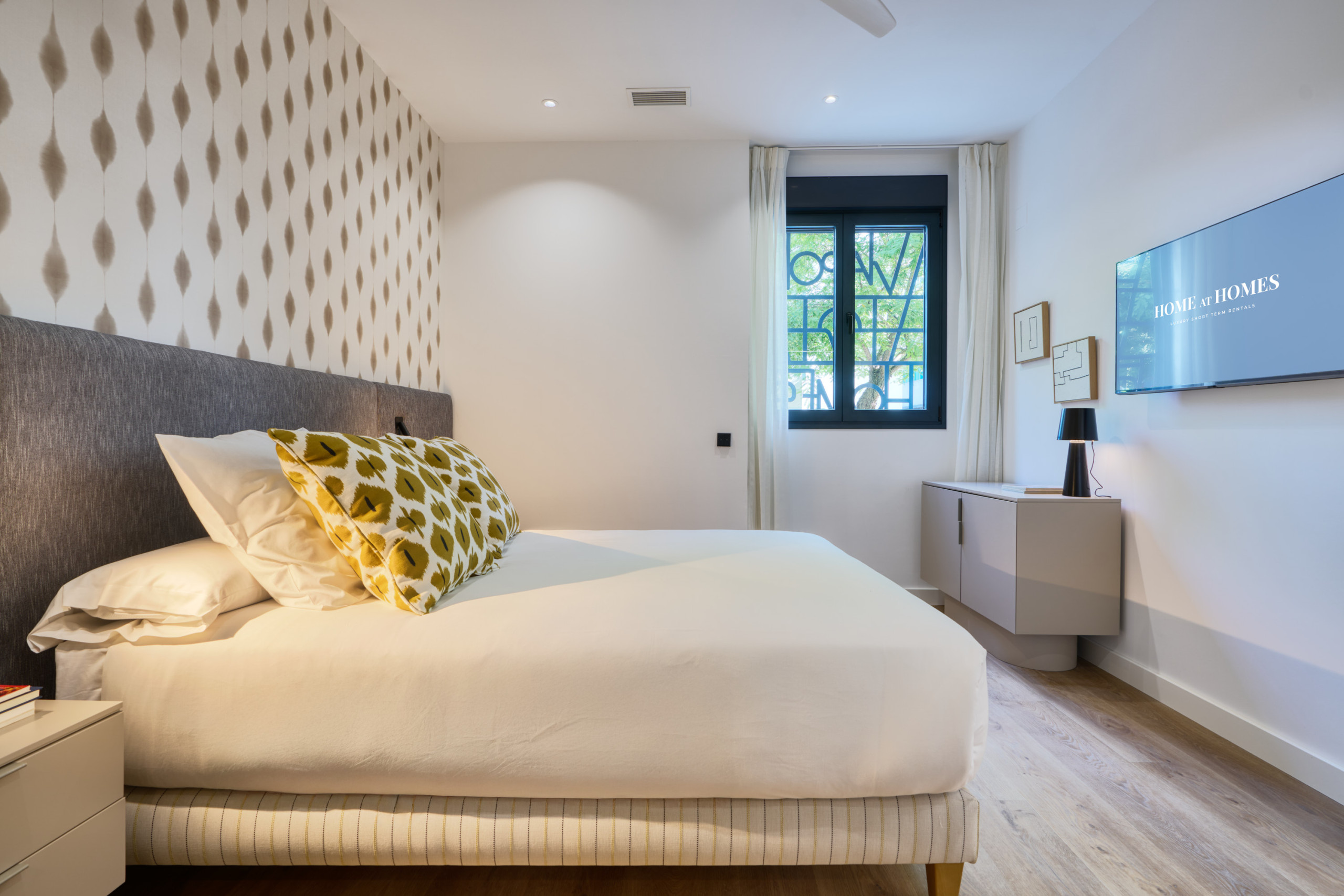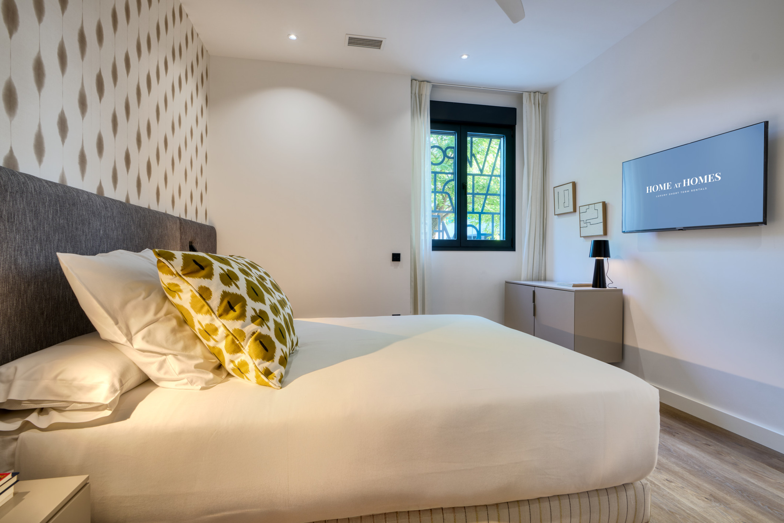 Situated on the first floor, the apartment offers an oasis of calm in the lively city. Though it is interior-facing, its clever layout and orientation ensure plenty of natural light and a sense of space — all while being remarkably quiet, perfect for relaxing after a day of exploring.