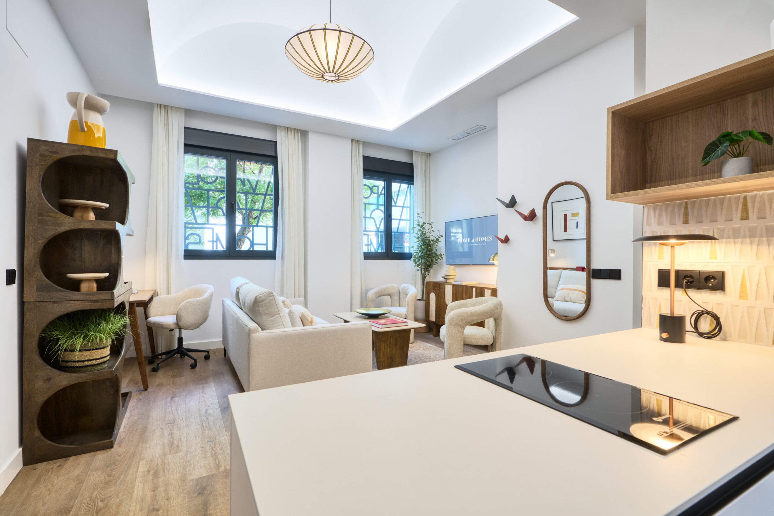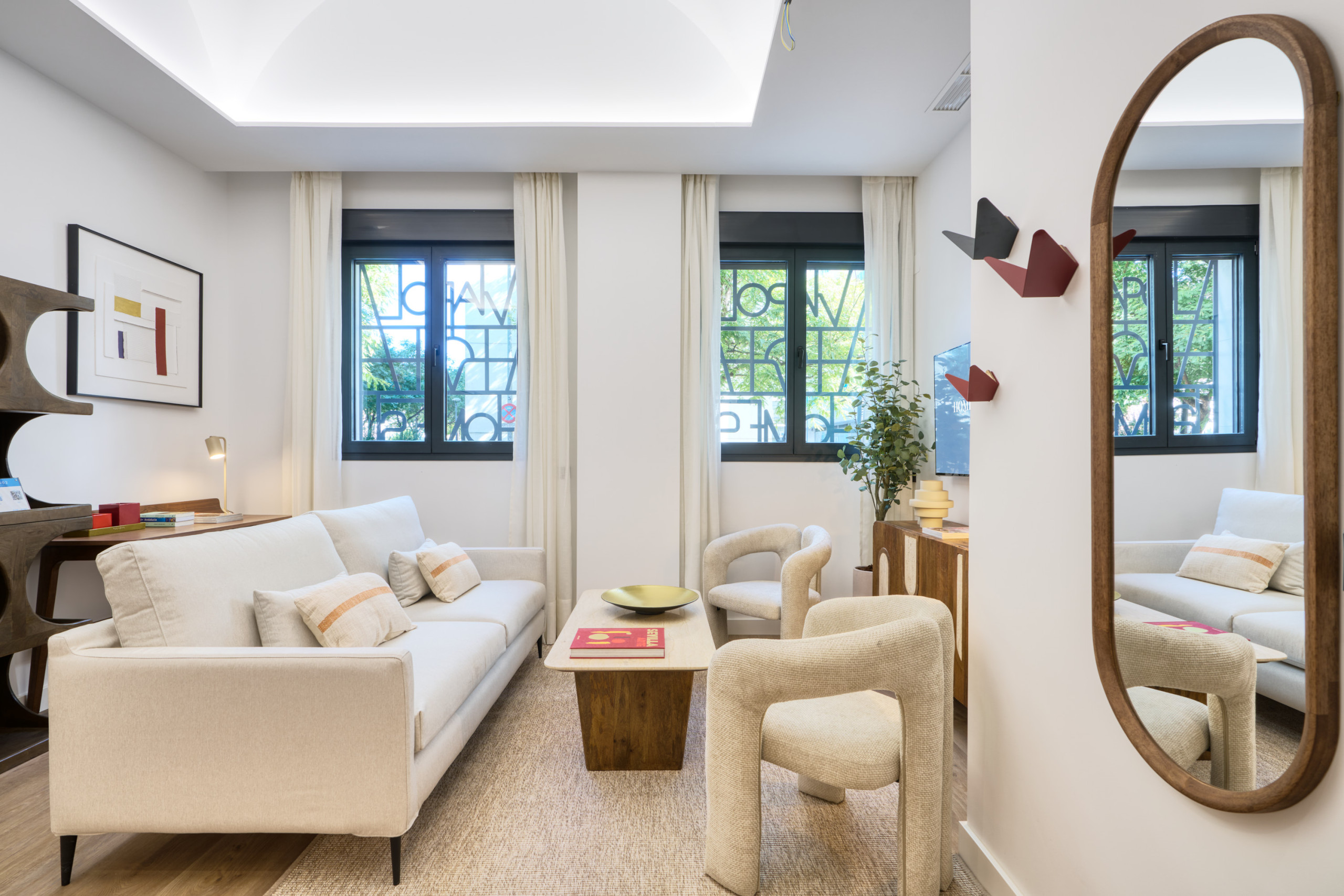 The interior decoration combines Spanish period furniture and contemporary pieces with balance, achieving a serene, elegant, and very welcoming aesthetic.